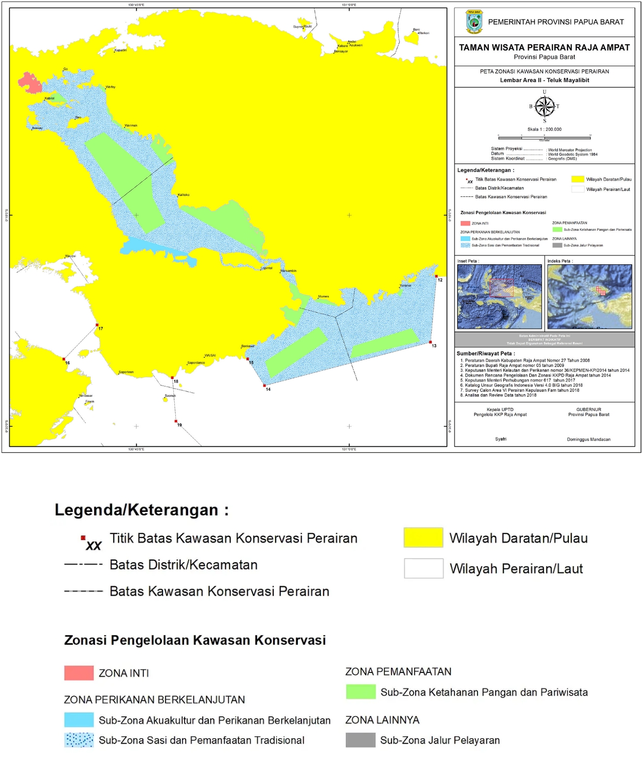 Deklarasi adat pada tahun 2006 tersebut kemudian diikuti oleh deklarasi di tingkat kabupaten oleh bupati Raja Ampat pada saat itu, Drs. Marcus Wanma., M.Si., yang mendukung pembentukan kawasan konservasi dengan luas 53.100 hektar di Teluk Mayalibit, bersama-sama dengan lima kawasan lainnya, yaitu Kepulauan Misool, Kepulauan Kofiau-Boo, Selat Dampier, Wayag (sekarang bernama Suaka Alam Perairan Waigeo Sebelah Barat), serta Kepulauan Asia dan Ayau.